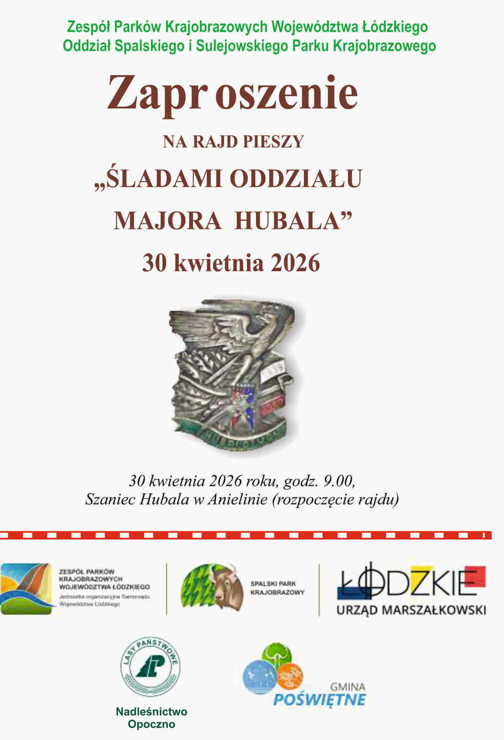 Zapraszamy na rajd pieszy "Śladami Oddziału majora Hubala" który odbędzie się w dniu 30 kwietnia 2026 r.