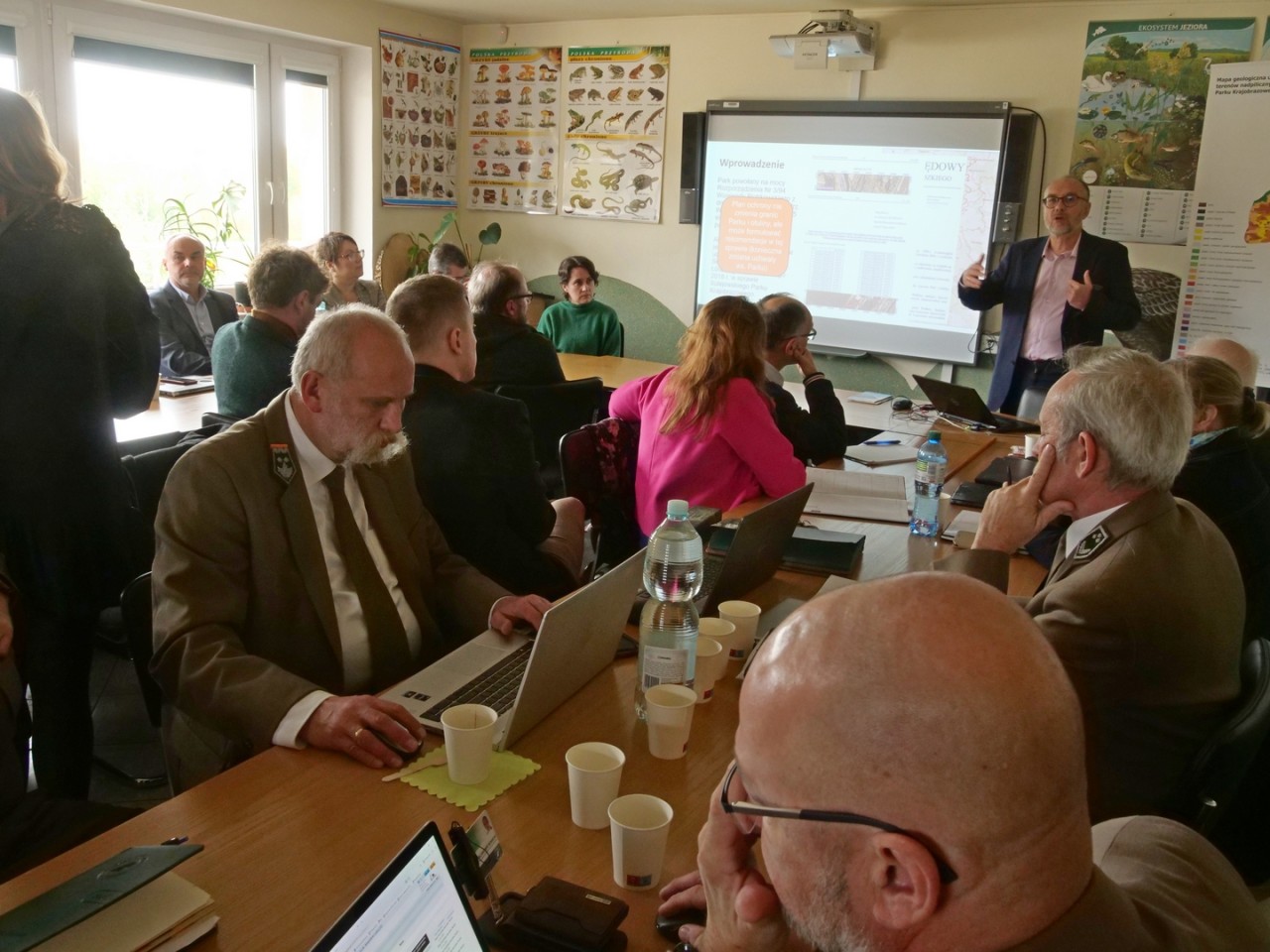 Spotkanie przebiegło w sposób zorganizowany i zgodny z planem, bez zakłóceń. Przedstawiciele wykonawców poszczególnych operatów zaprezentowali dotychczasowe wyniki prac oraz planowane działania w ramach kolejnych etapów projektu. Po części prezentacyjnej wykonawca zaprosił uczestników do podzielenia się opiniami lub komentarzami, jednak nikt z obecnych nie zabrał głosu. Na zakończenie wykonawca projektu zachęcił wszystkich uczestników do aktywnego udziału w dalszych etapach prac oraz do składania wniosków i sugestii dotyczących projektu planu ochrony - najlepiej w pierwszym i drugim kwartale 2026 roku. Podczas spotkania Wykonawca przekazał uczestnikom spotkania ankiety, których celem było lepsze zrozumienie potrzeb, zagrożeń czy problemów dotyczących Parku.