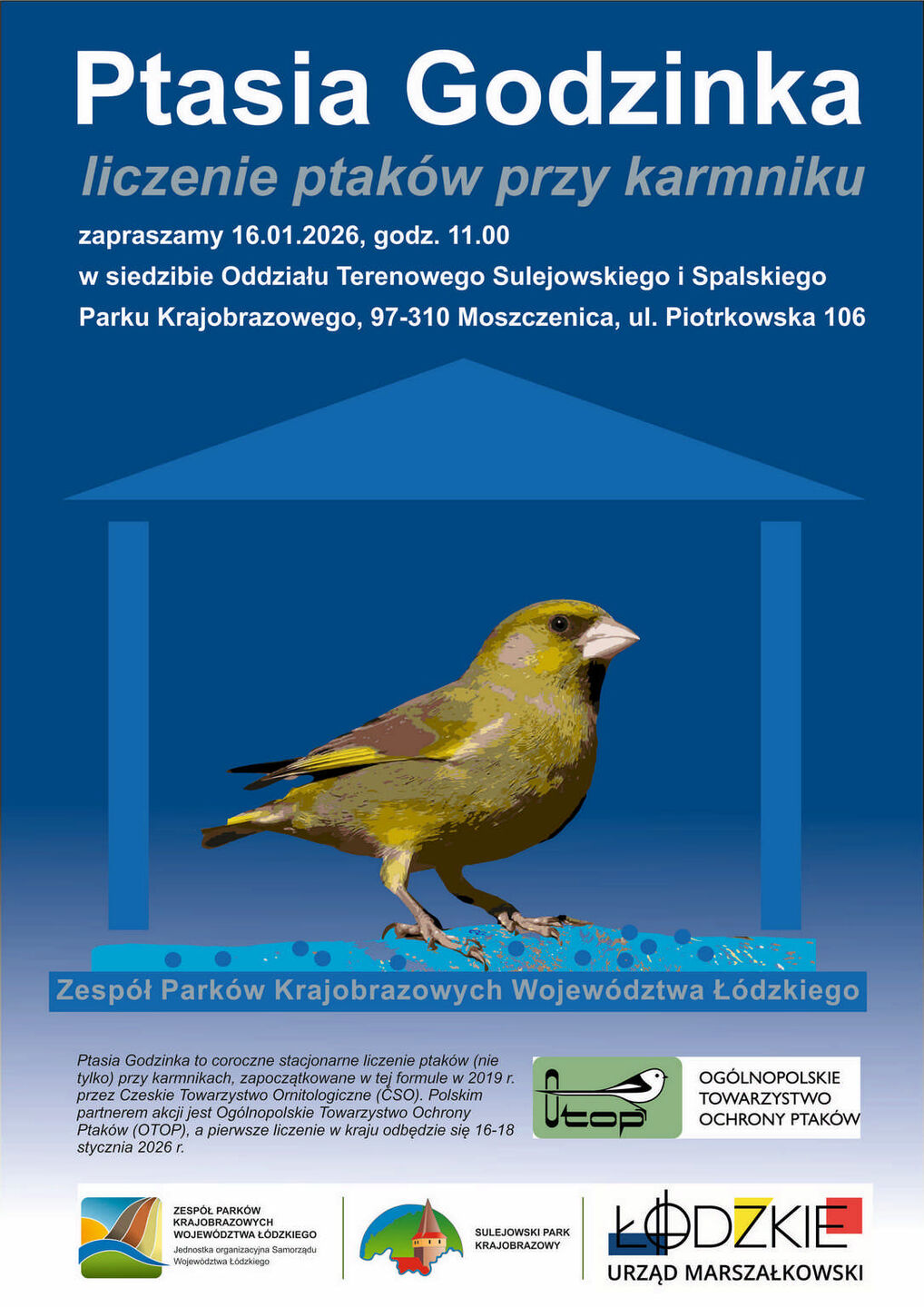 W ostatnich dniach pracownicy Zespołu Parków Krajobrazowych Województwa Łódzkiego (reprezentowani przez pracowników PPK) aktywnie włączyli się w ogólnopolską akcję liczenia ptaków „Ptasia Godzinka”, organizowaną przez Ogólnopolskie Towarzystwo Ochrony Ptaków (OTOP).