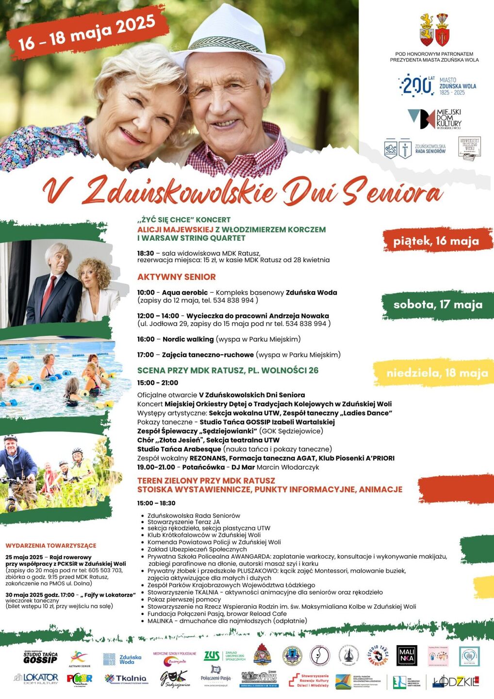 Zapraszamy Państwa do Zduńskiej Woli, gdzie w dniach 16-18 maja obchodzone będą V Zduńskowolskie Dni Seniora.